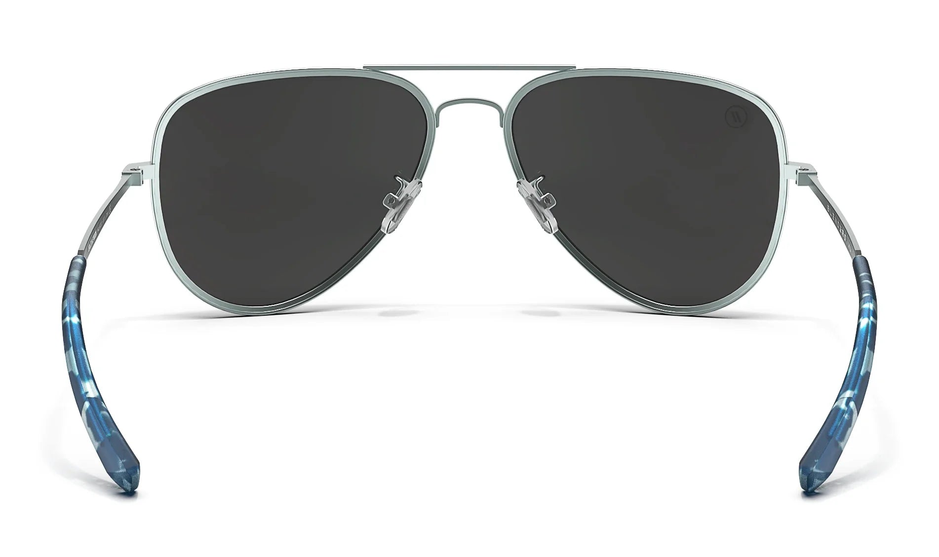 Stunt on ‘em with our ‘Maliblue Moon’ shades. These blend the tried-and-true appeal of the aviator aesthetic with the allure of modern detailing. The frames encircling the polarized silver mirror lenses glide on a gradient from blue to light blue, with the latter hue stretching down the temple arms. The ear rests create serious visual interest and sublime cohesion with a blue tortoise acetate reflecting the dual tones of the frame. That’s a lot to take in, we understand, but just know this—with ‘Maliblue Moon’ on, no one’s gonna eclipse your style. //