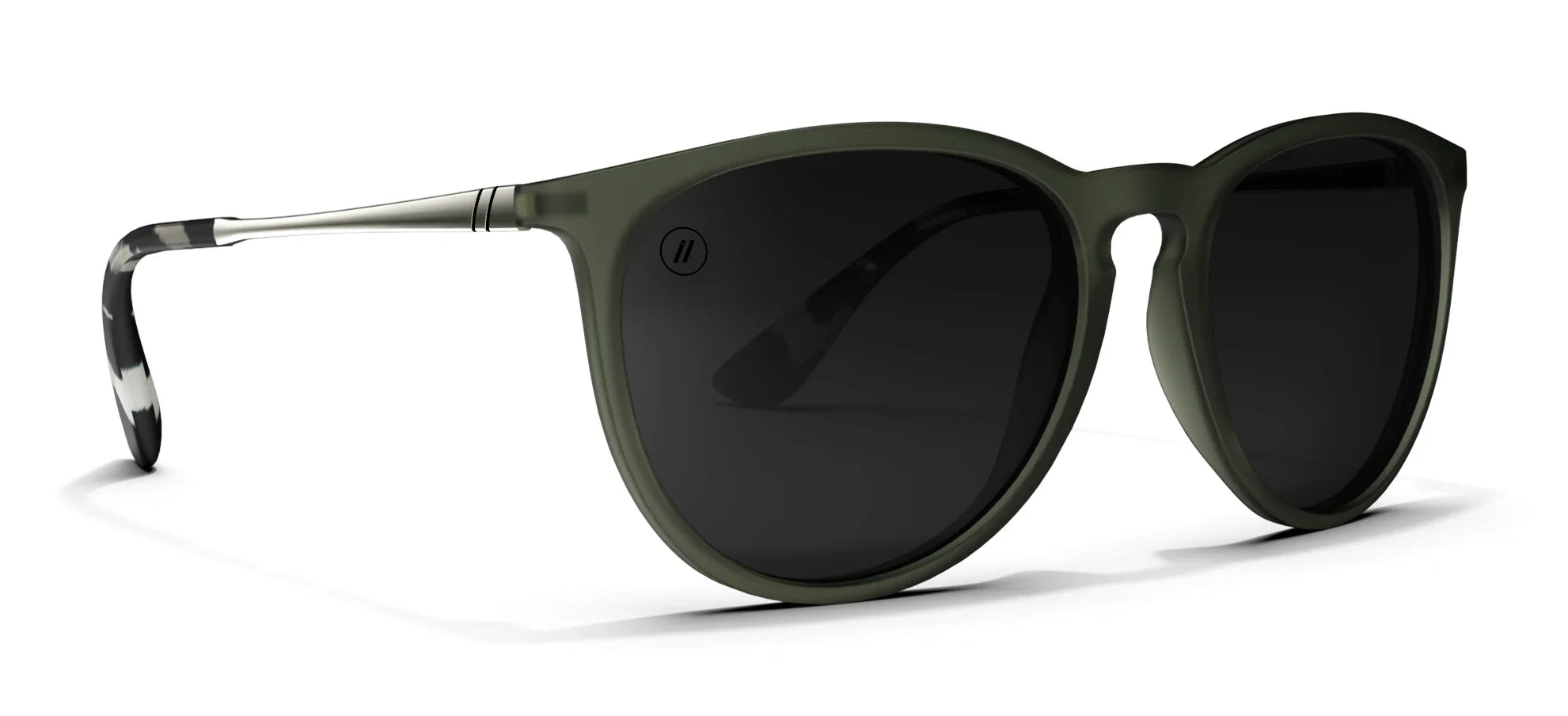 ‘Olive U’ is that perfect example of how good something can be when it all just comes together—when the sum of parts equal a way greater whole. Something about the semi-transparent front frame and its deep, muted matte green tone plays perfectly with the polarized black round lenses and ear tip tortoise print. It’s the sort of effortless standout that’s unapologetically cool. //